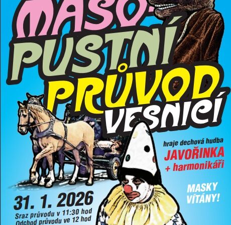 Chtěli bychom vás pozvat na náš masopustní průvod v Mniší. Sraz máme v 11:30 u KD a plánovaný odchod je ve 12 hod. Medvěd, koňský povoz, tři lidoví harmonikáři a věřím že spousta masek pak projde naší vesnici.